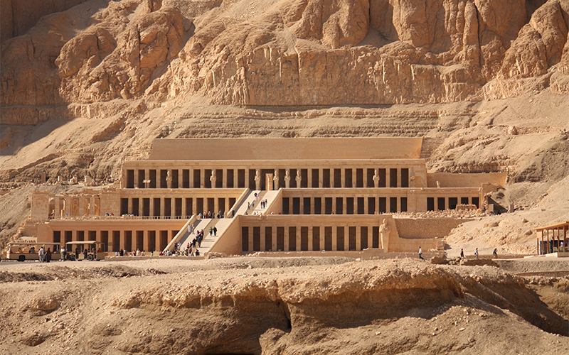 After Hatshepsut's death, her successor Thutmose III tried to strike her name from history by defacing her images and inscriptions all over Egypt—including in her mortuary temple. Yet so much of the temple's artwork escaped damage that modern archaeologists have been able to piece together her story.
